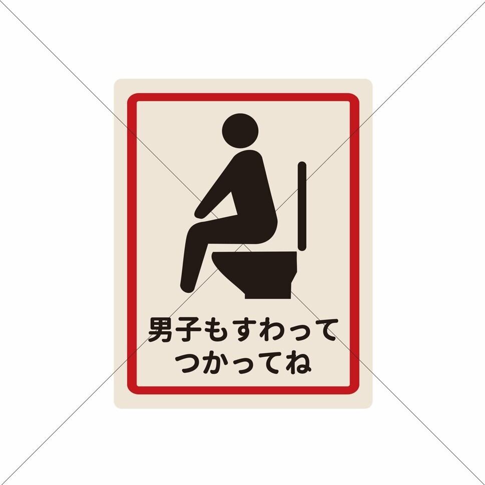 飛び散り防止・トイレ掃除・立ちション禁止【男子も座って使ってね】ステッカーシール・清潔感・習慣・環境維持