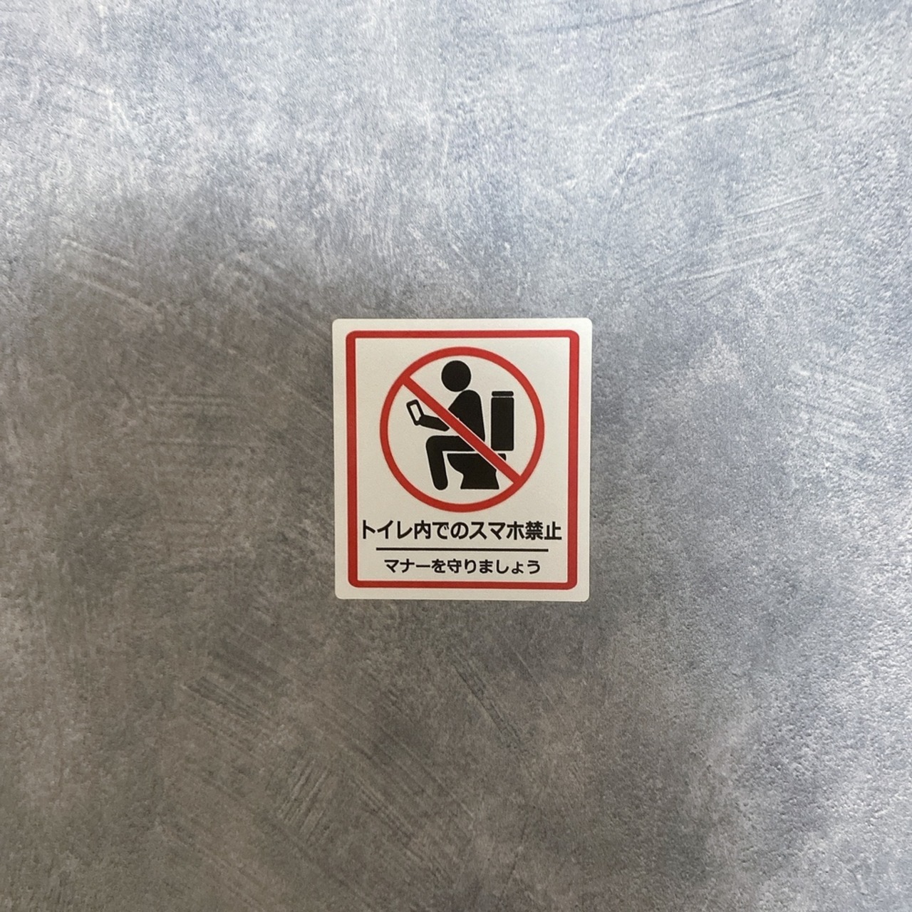 こちらの商品はトイレ利用者に対して「トイレ内でのスマホ禁止」というメッセージを伝えるステッカーシールです。この明確なメッセージがトイレでの安らぎを保ち、スマホ依存を防ぐお手伝いをします!