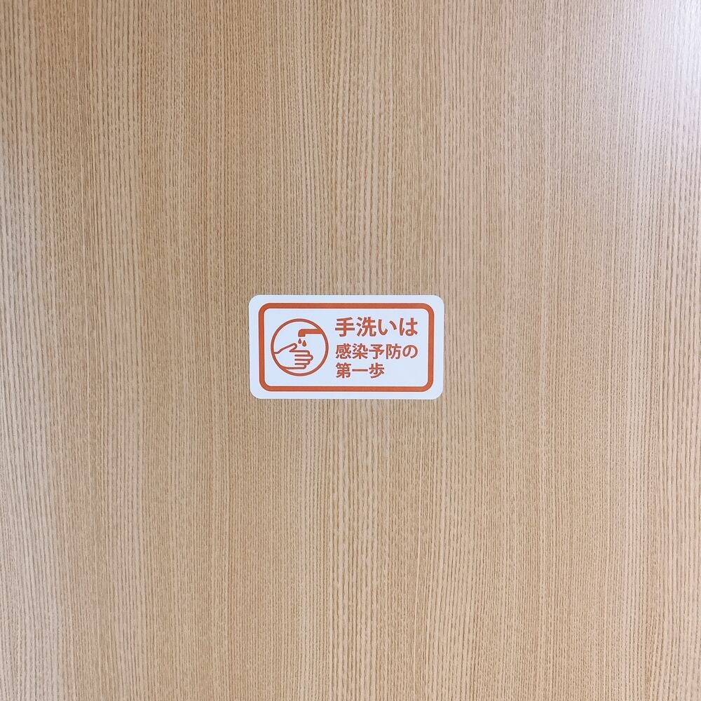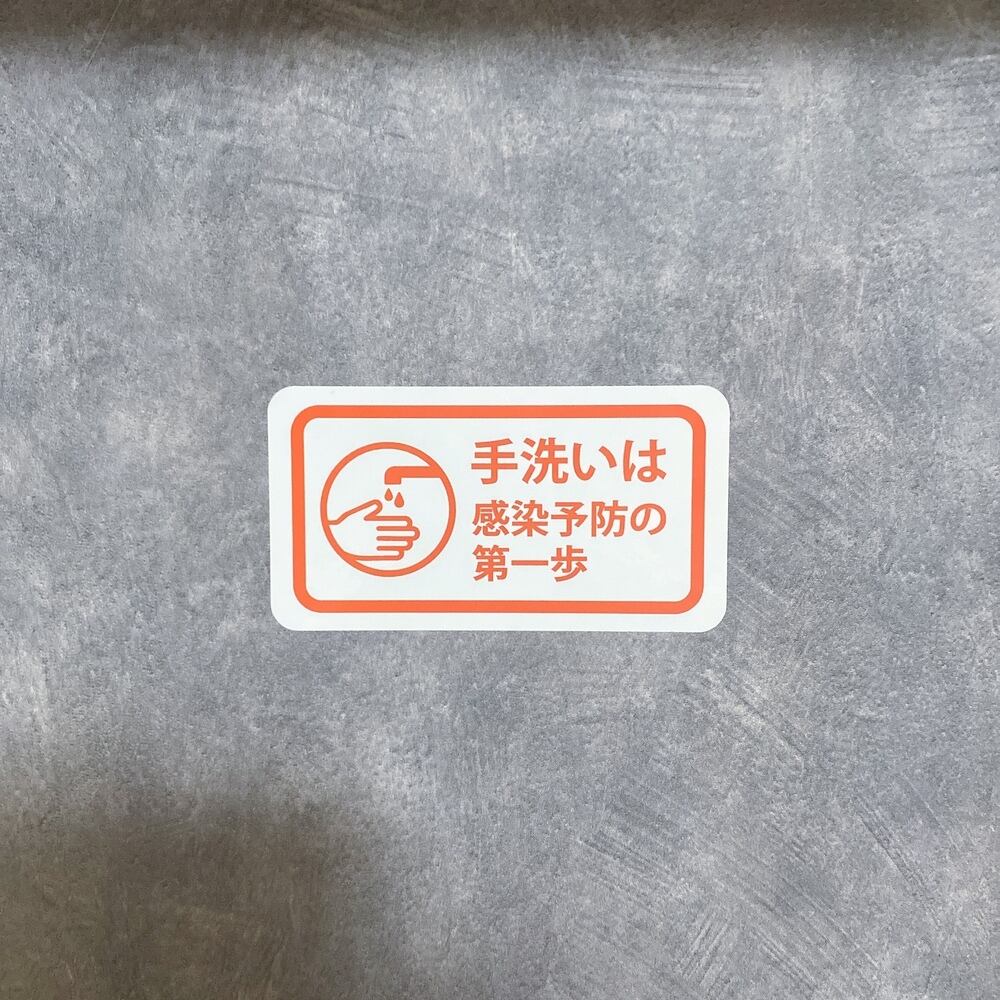 こちらの商品は洗面台やトイレなどに貼ることで「手洗いは感染予防の第一歩」というメッセージをしっかりと伝えるシールです。この明確なメッセージが、使用される方々の意識を高め、衛生的な環境作りに貢献します!