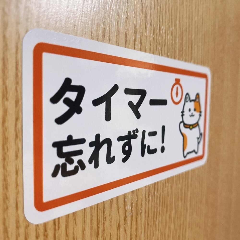 こちらの商品はベッドや玄関ドア付近に貼ることで「タイマー忘れずに!」というメッセージをしっかりと伝えるシールです。この明確なメッセージが、就寝前や外出前の心の準備を促し、安眠や熟睡に繋がるお手伝いをします!