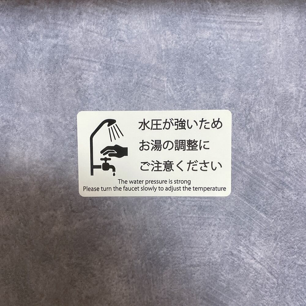 安全で快適な滞在のために!【水圧が強いためお湯の調整にご注意ください】シール