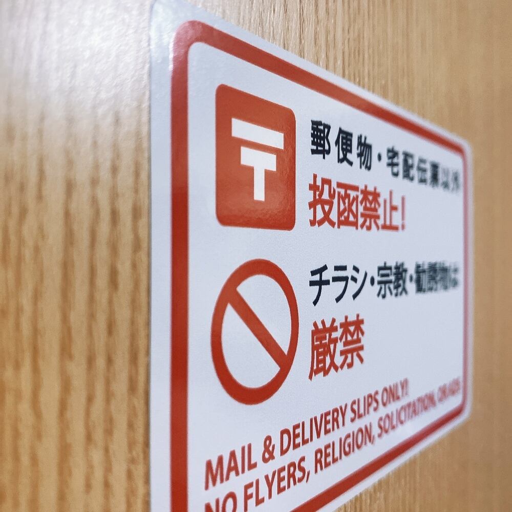 こちらの商品は玄関ポストやメールボックス、宅配ボックスに設置し、「無断投函禁止」や「チラシ・勧誘お断り」というメッセージをはっきりと伝えるシールです。この明確なメッセージが、不要な営業や広告を効果的に抑え、安全で快適な受取環境を実現するお手伝いをいたします!