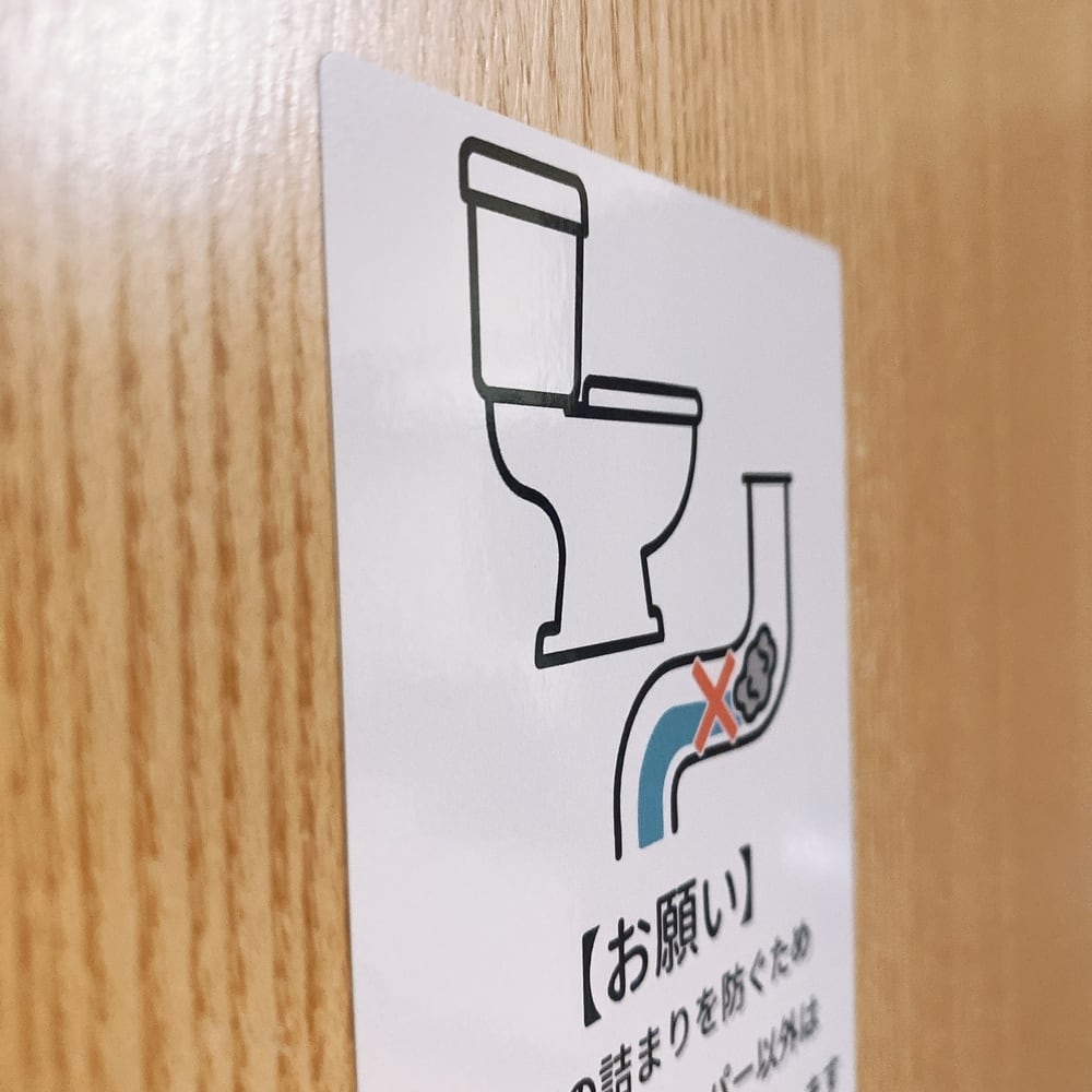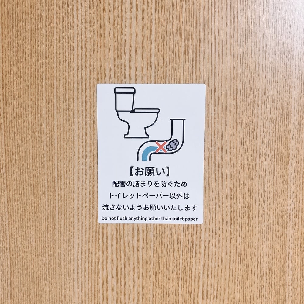 こちらの商品はトイレ内に貼ることで「配管の詰まりを防ぐため、トイレットペーパー以外は流さないようお願いいたします」という大切なメッセージを利用者に伝えるためにデザインされたシールです。このシンプルで効果的なデザインが、トイレの詰まりを軽減し、清潔で快適な空間を保つお手伝いをいたします!