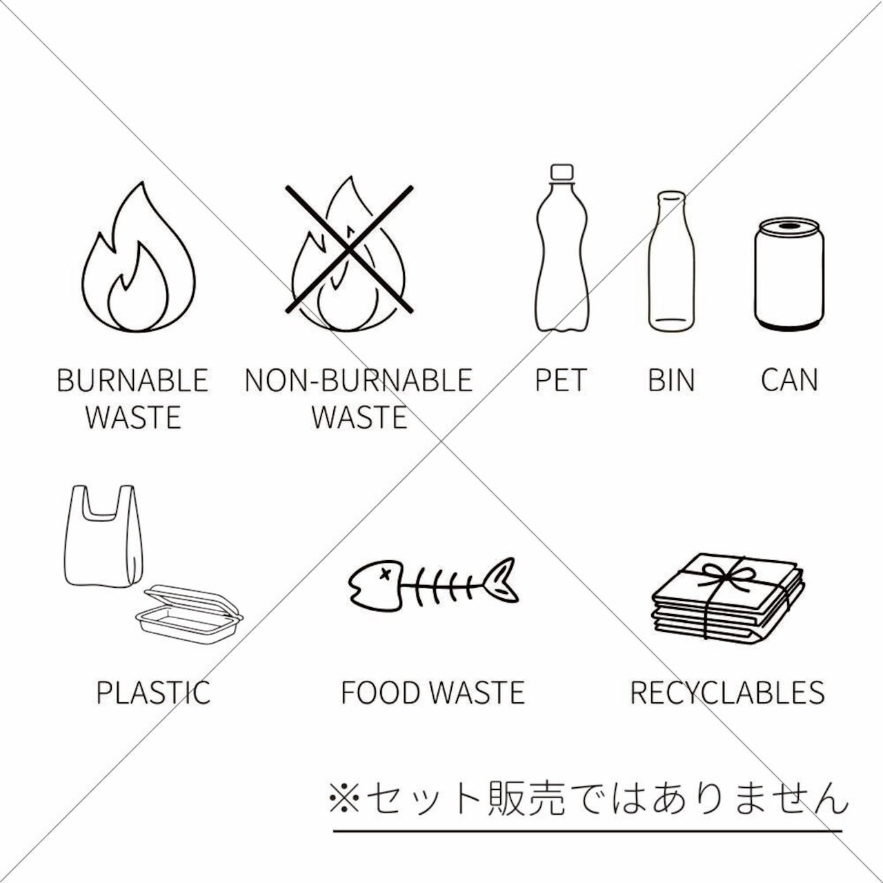 こちらの商品は暮らしの中でのゴミ分別をスムーズに行うためにデザインされたおしゃれでシンプルな防水カッティングステッカーです。英語表記とイラストで、どなたでもわかりやすく、環境への配慮を大切にしたい方にピッタリのアイテムです!