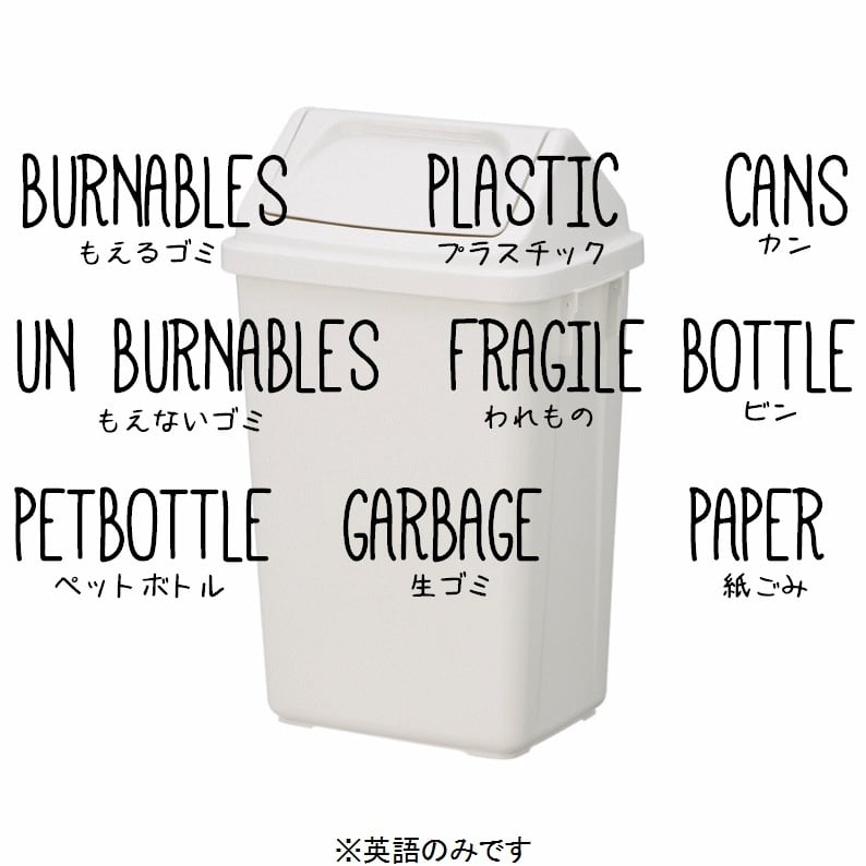 オーダーメイド、ハンドメイド、ゴミ箱、インテリア、DIY、模様替え、家具、収納、生活、ウォールステッカー、ゴミ分別、引っ越し、新築、モノトーン、白黒、ステッカーシール、ラベル、便利、お洒落、燃えるゴミ、ペットボトル、空き缶、プラスチック、燃えないゴミ、割れ物、生ゴミ、ダストボックス、子供部屋、新生活、おもしろ、スチール缶