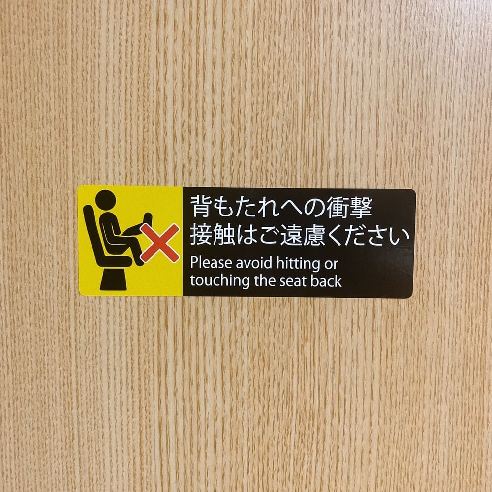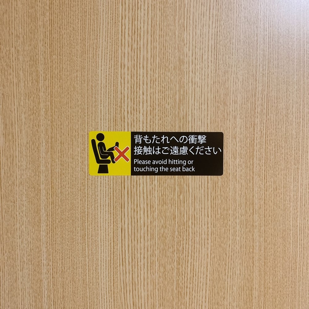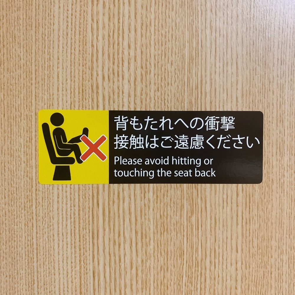 注意喚起・バス・映画館・空港【背もたれへの衝撃、接触はご遠慮ください】シール・ステッカー・迷惑行為・英語