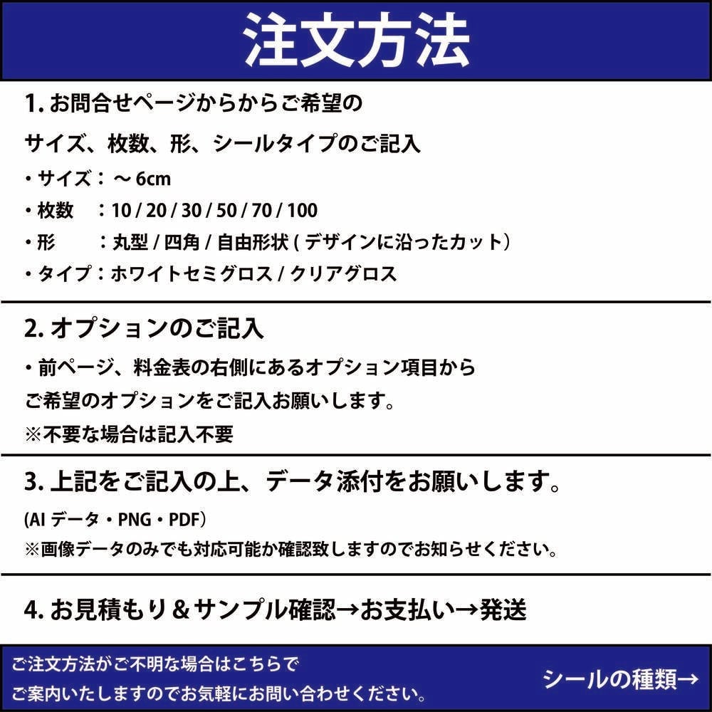 こちらの商品は企業、事業者向けに特化した「オリジナルステッカーシール」で、丸形や四角、自由形状で貴社のブランドイメージを高めるお手伝いをします。