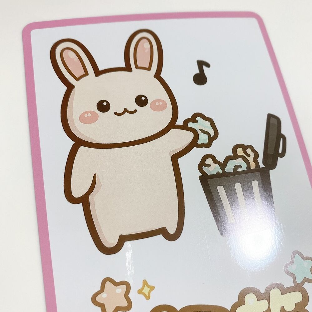 こちらの商品は愛らしいうさぎがデザインされた「ゴミ箱用ステッカーシール」です。ピンク色の可愛いデザインで家庭やオフィス、学校など、さまざまなシーンで活躍します。