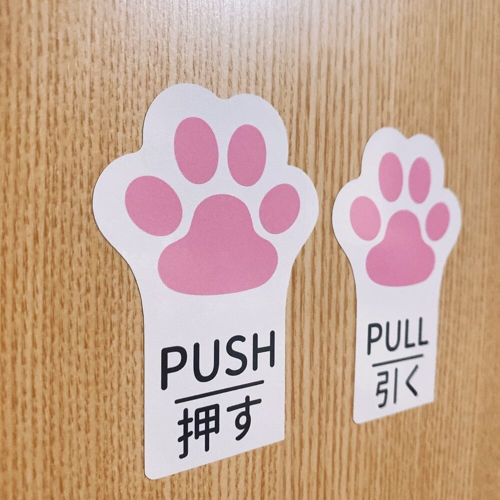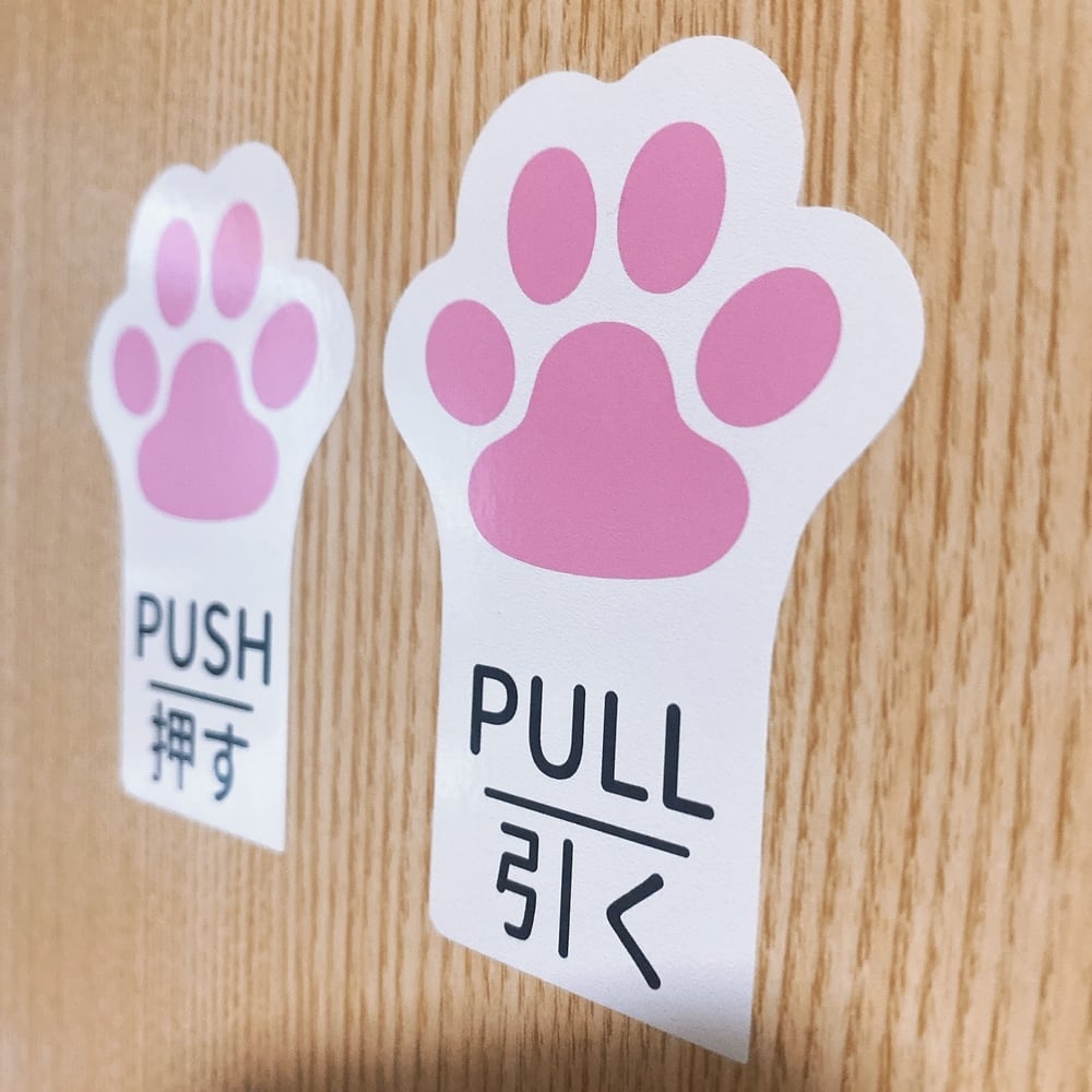 こちらの商品は可愛い肉球がデザインの「PUSH・PULLステッカーシール」です。