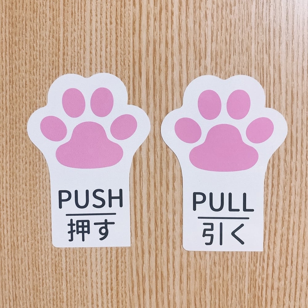 ペットショップ・ご自宅・カフェ【肉球・押す・引く・PUSH・PULL】シール・コンパクト・可愛い・防水
