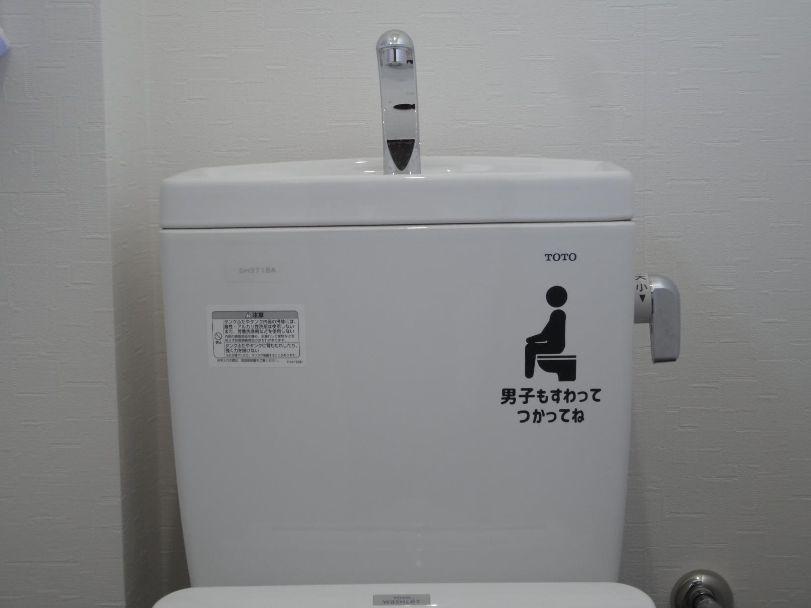 【立ちション禁止・飛び散り防止】男子も座って使ってねステッカーシール【トイレサイン・トイレマーク】