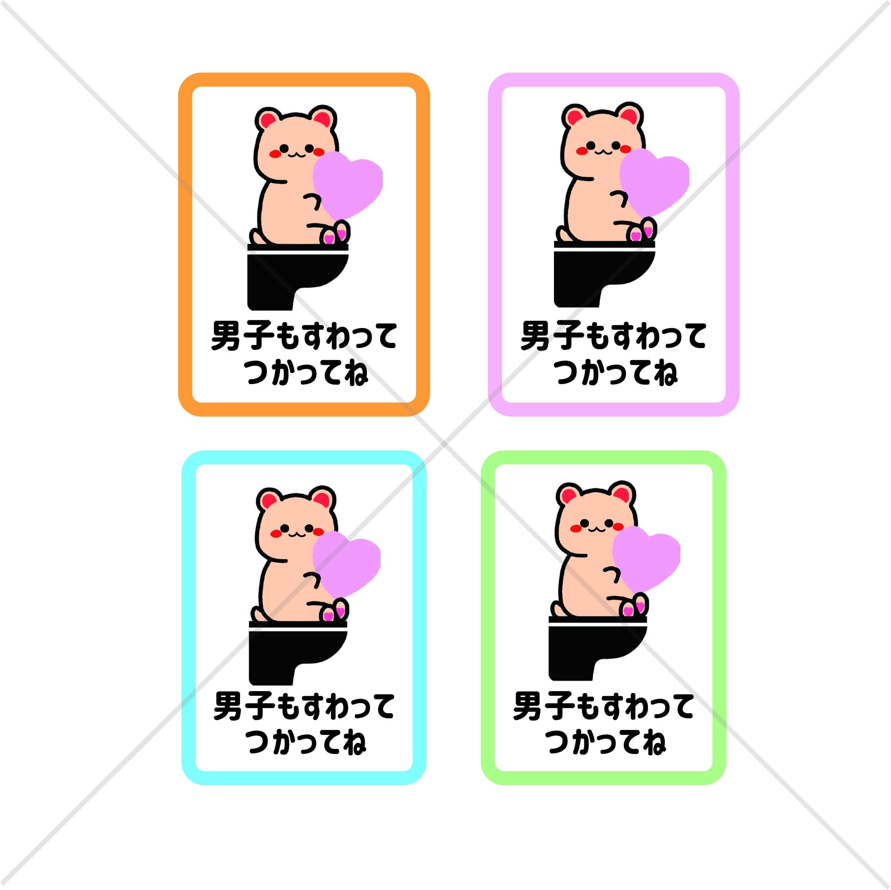 【トイレ掃除・立ちション禁止・便座・便器・トイレ・レストルーム】【店舗・ペットショップ・学校・ホテル・施設・公園】くまちゃんで男子も座って使ってね色付きシール♪【育児・プチギフト・子供・歯医者】