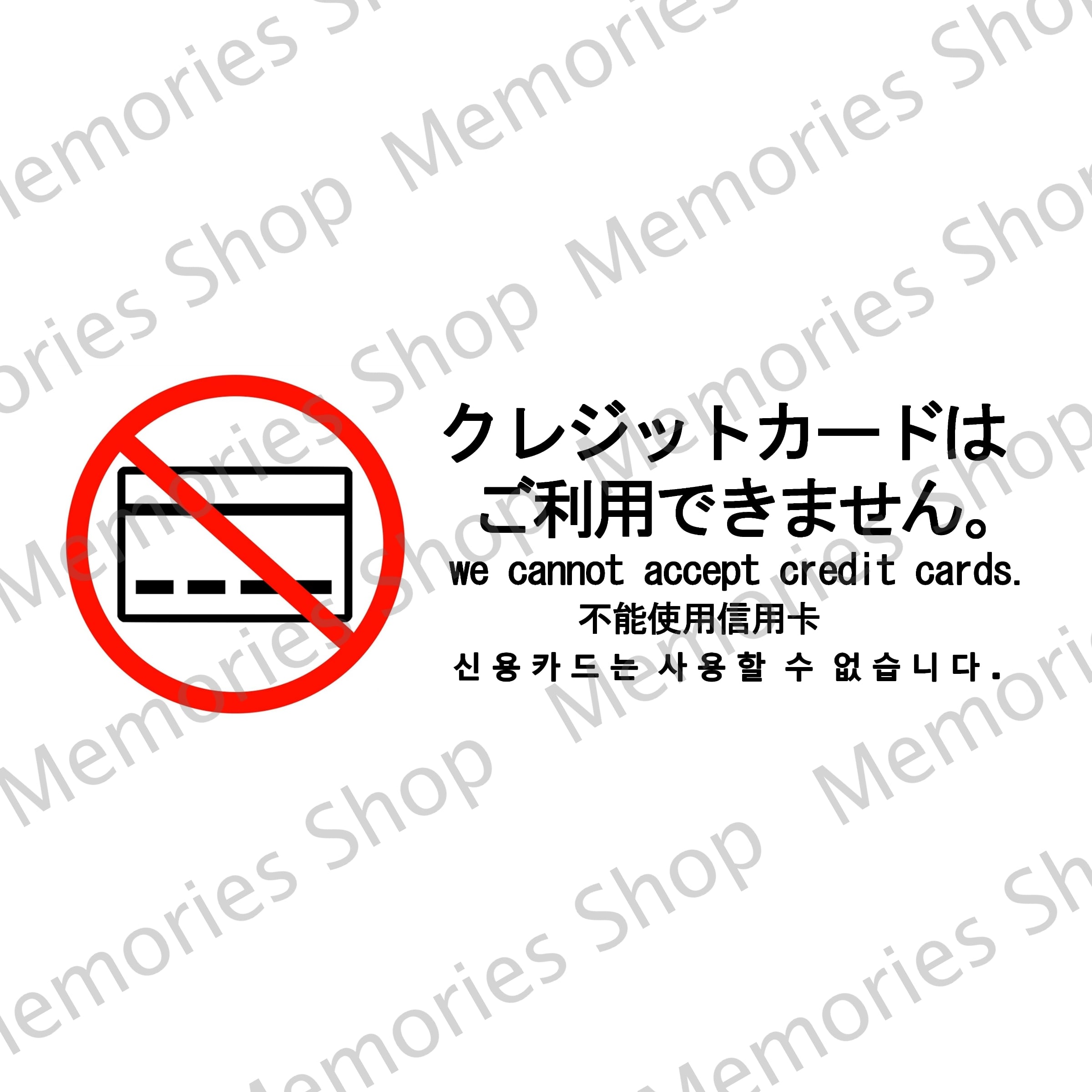 【警告サイン・警告ステッカー】注意喚起!英語、中国語、韓国語表記で便利!クレジットカードはご利用できません。色付きステッカー!