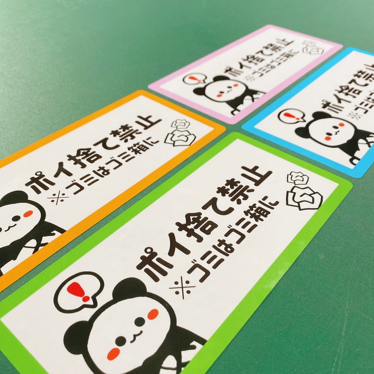注意喚起!【環境問題・地球温暖化】可愛くパンダさんでポイ捨て禁止ステッカー!【パンダ・可愛い・店舗用】【道路・道端・電柱・飲食店】【カッティングシール・カッティングシート】