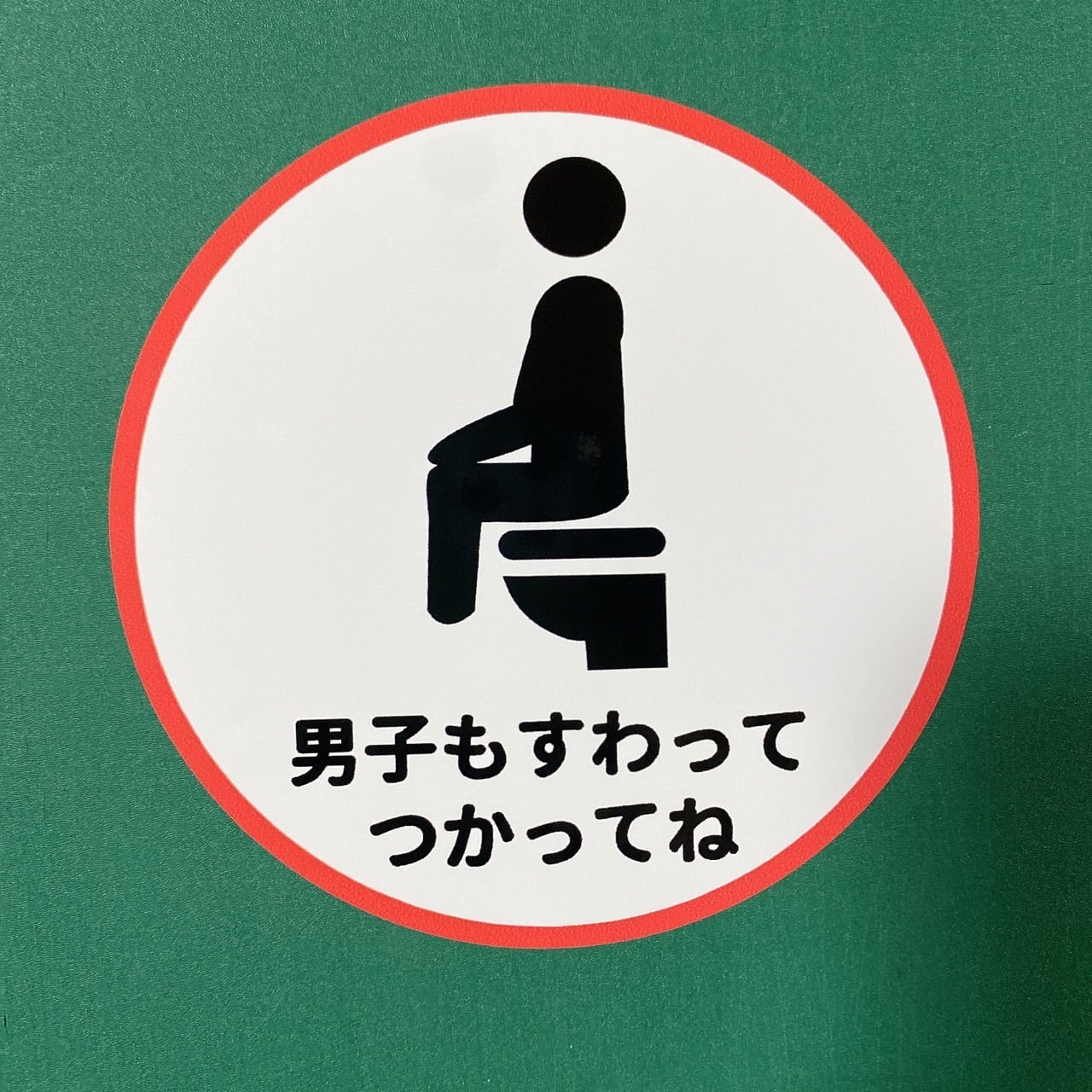 「男子もすわってつかってね」と協力を呼び掛けている色付きシールです!