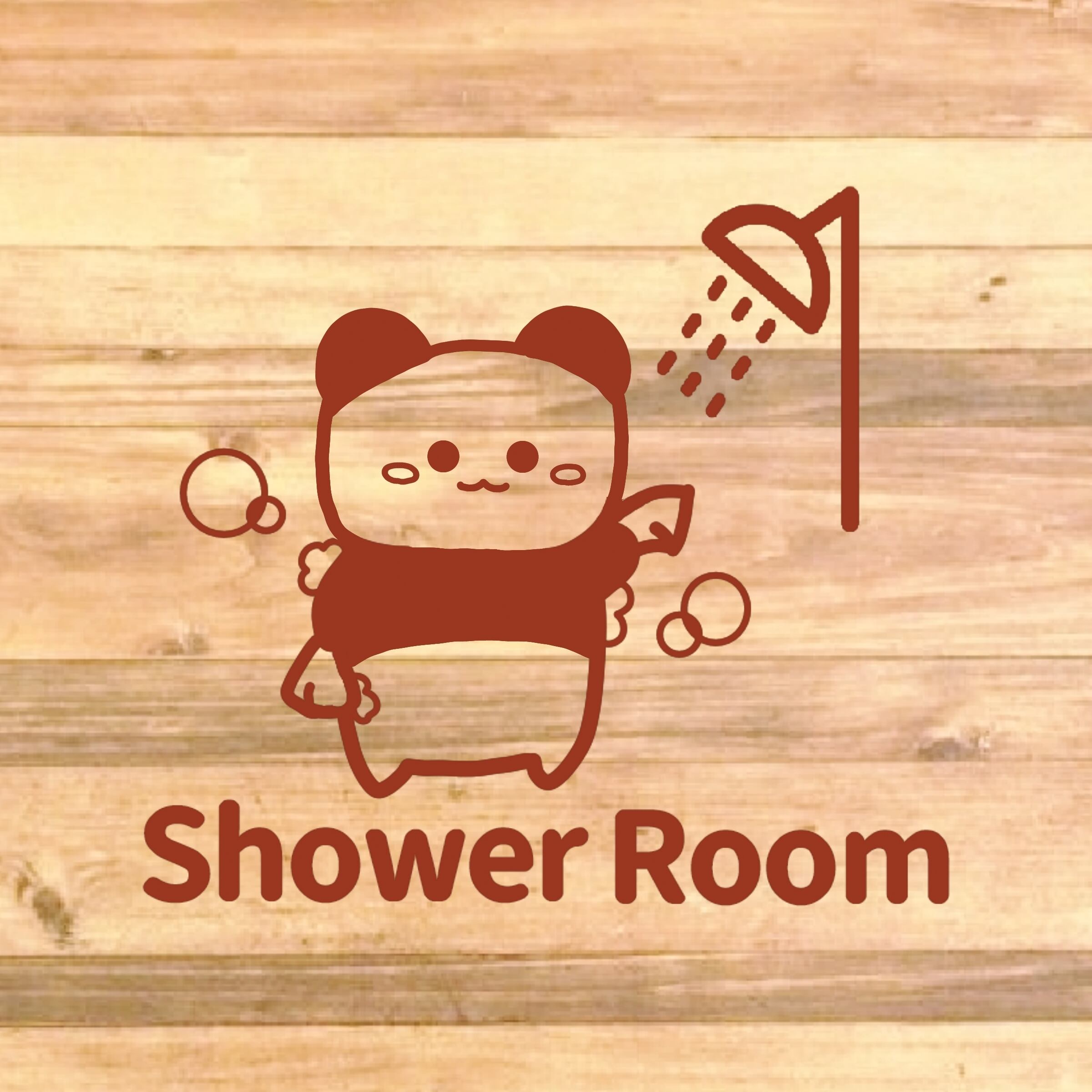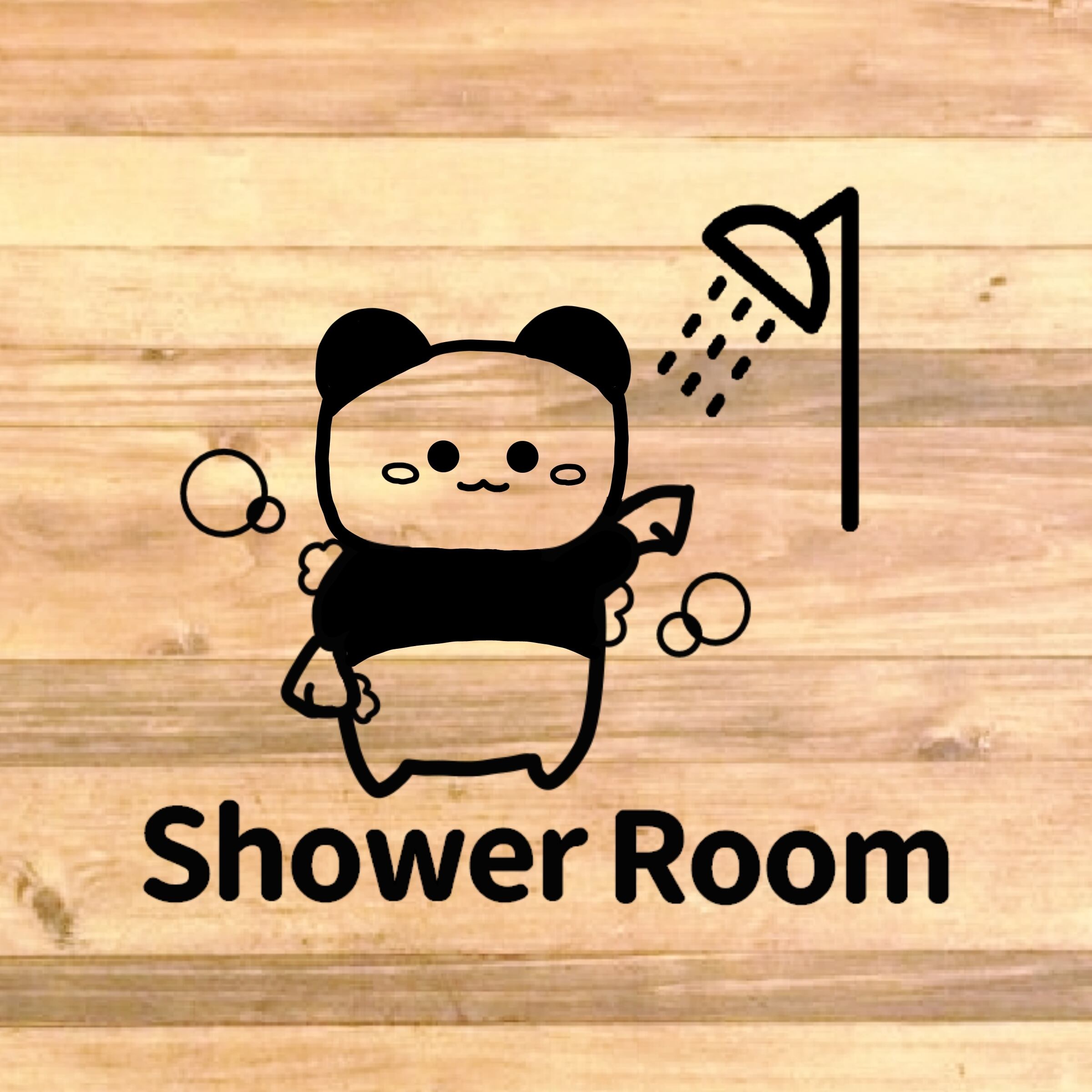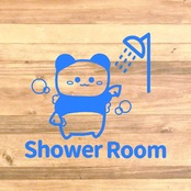 【自宅用・店舗用・施設・海・プール】可愛いパンダさんのイラストでShowerRoomステッカー♪【入浴・バスルーム・シャワールーム】【カッティングシール・カッティングシート】