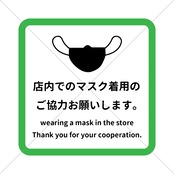 注意喚起!【コロナ対策・拡大防止・感染防止】店内でのマスク着用のご協力おねがいします英語表記付き色付きシール!【店舗・施設・飲食店・フードコート】