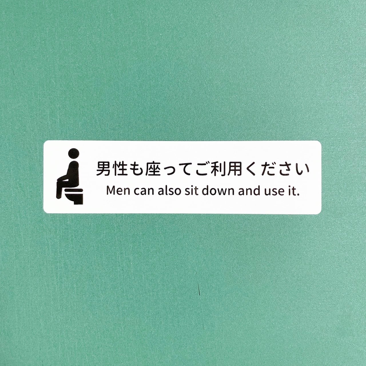 注意喚起!【注意サイン・注意マーク】横長で英語表記で分かりやすく!男性も座ってご利用ください色付きシール!【トイレサイン・トイレマーク】【レストルーム・トイレ・お手洗い】