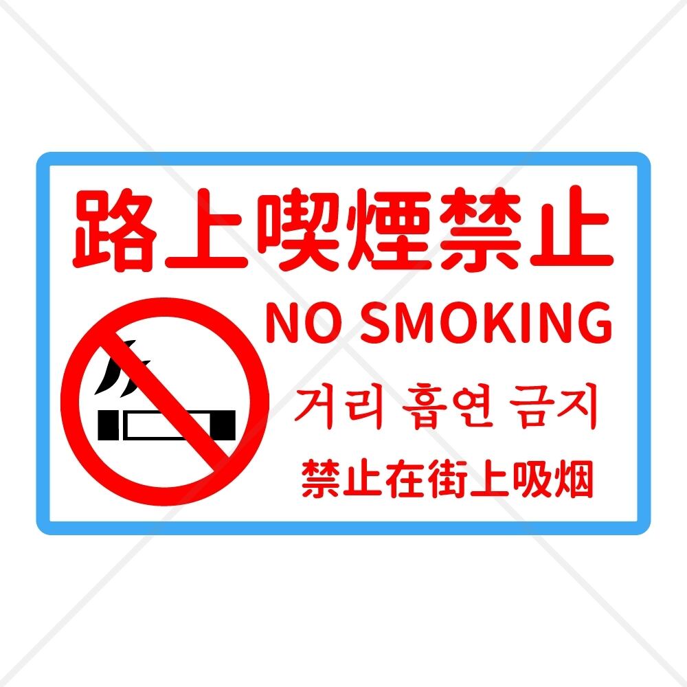 注意喚起!【禁止サイン・禁止マーク】大きめサイズで分かりやすい!英語、中国語、韓国語対応!路上喫煙禁止シール!【駅前・店舗前・施設前・歩道】【色付きシール・防水シール・注意喚起シール】