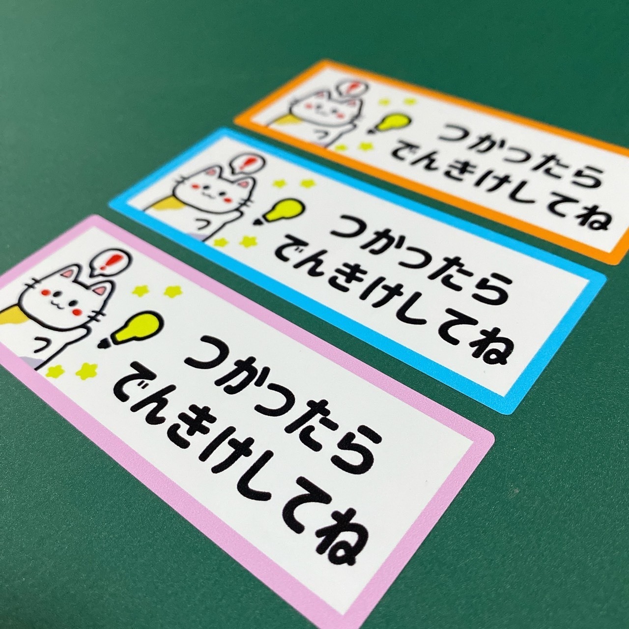 【節約・節電・電気・消し忘れ・電気スイッチ・お悩み解決】【自宅・店舗・施設・リビング・寝室】猫ちゃんが癒しの決め手!つかったらでんきけしてね色付きシール♪【子供・育児・幼稚園・保育園・プチギフト・使ったら電気消してね】
