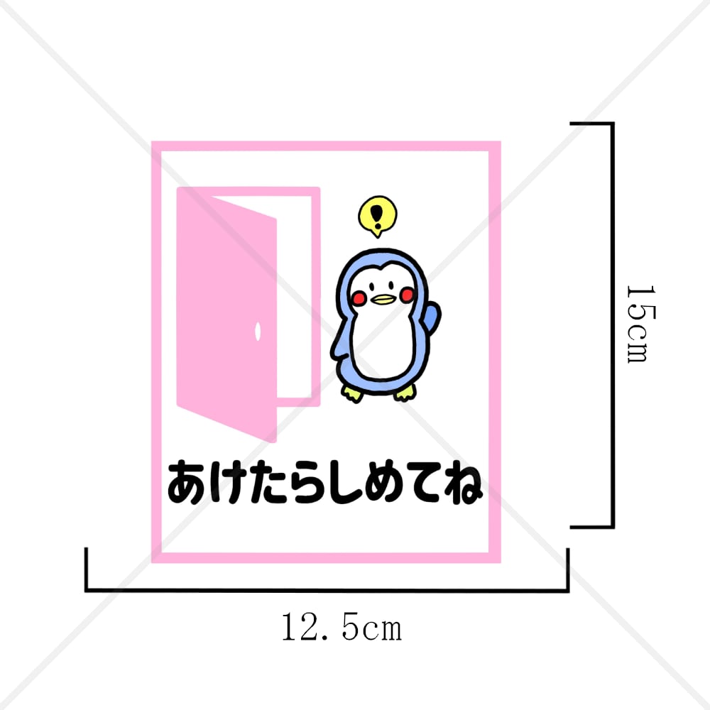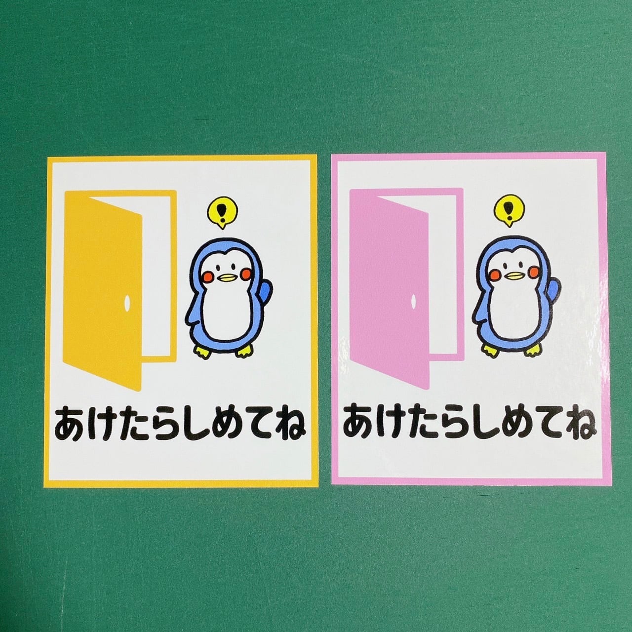 注意喚起!【あけたらしめてね・ドア・扉・開閉・開け閉め・開けたら閉めて】貼って可愛く!ペンギンさんで開けたら閉めてね色付きシール♪色付きシール♪【ステッカー・シール・防水・トイレ・自宅・店舗・バスルーム】